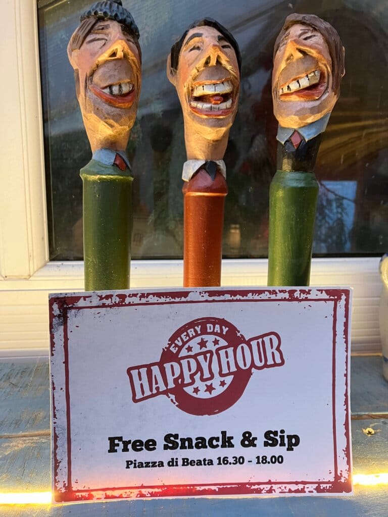 Happy Hour is complimentary for our guests and is served ‘Under the Stars’ in our picturesque Italian square, where the weather is pleasant year-round!
